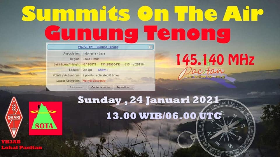 Activation Gunung Tenong YBJ/JI-121 ORARI Lokal Pacitan – YH3AB QRV pada 145.140 MHz pukul 13.00 Wib / 06.00 UTC.(\tfb)