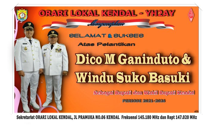ORARI Lokal Kendal mengucapkan Selamat dan Sukses atas terpilih dan dilantiknya Dico M Ganinduto & Windu Suko Basuki sebagai Bupati dan Wakil Bupati Kendal Periode 2021-2026.