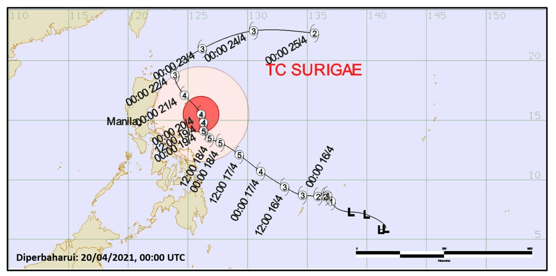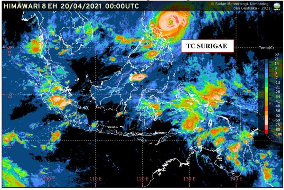 Siklon tropis SURIGAE atau yang dikenal dengan sebutan Bising di Filipina, ditetapkan menjadi Super Typhoon Surigae syau Super Taifun Surigae.