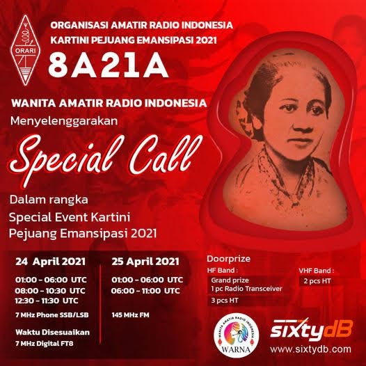 Wanita Amatir Radio Indonesia (WARNA), dalam rangka Special Event Kartini Pejuang Emansipasi 2021 mengadakan Special Event Station atau Special Call 8A21A.