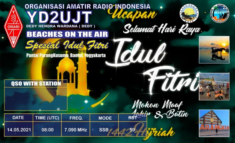 Tanggal 14 Mei 2021 kembali akan di gelar tikar di atas pasir Pantai Parangkusumo. Tepat pada hari kedua dalam masa perayaan Idul Fitri, Dedy akan melakukan kegitan Outdoor Amatir Radio yang sangat menyenangkan ini dan QRV di frekuensi 7.090 MHz. Kegiatan BOTA Pantai Parangkusumo diharapkan juga sebagai kampanye mengajak rekan-rekan untuk tetap dirumah saja dalam situasi pandemi Covid-19.