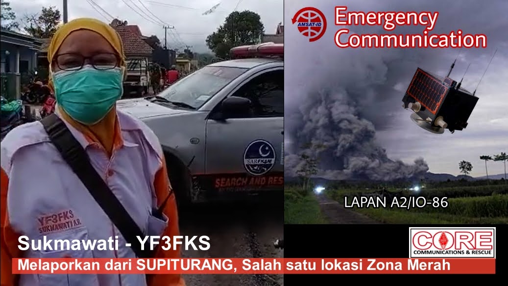 Dukungan komunikasi kebencanaan Erupsi Gunung Semeru OI61lv via satelit LAPAN A2/ORARI. Komunikasi Via Satelit dalam Dukungan Komunikasi Gunung Semeru akan bekerja pada frekuensi Up 145.880MHz Down 435.880MHz, sesuai Jadwal Satelit.