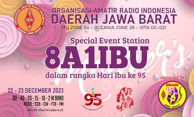 Semarakkan Hari Ibu Nasional ke-95, 22 Desember 2023 beberapa stasiun khusus (Special Event Station) memancar serentak memanggil seluruh Amatir Radio melalui beberapa band dan mode.