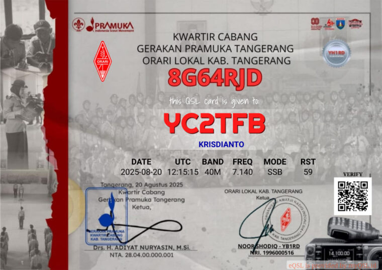 Club Station ORARI Lokal Kab. Tangerang (YH1RD) mengadakan kegiatan Special Event Station (SES) 8G64RJD dalam rangka memperingati HUT PRAMUKA Ke-64. Kegiatan SES 8G64RJD berlangsung selama tiga hari yaitu…