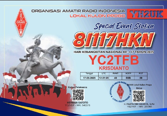 KULONPROGO, Sabtu (17/05/2025) – ORARI Lokal Kulonprogo menggelar kegiatan Special Event Station (SES) dengan callsign 8I117HKN hari ini, Sabtu (17/05/2025), dalam rangka memperingati Hari Kebangkitan Nasional ke-117. Kegiatan…